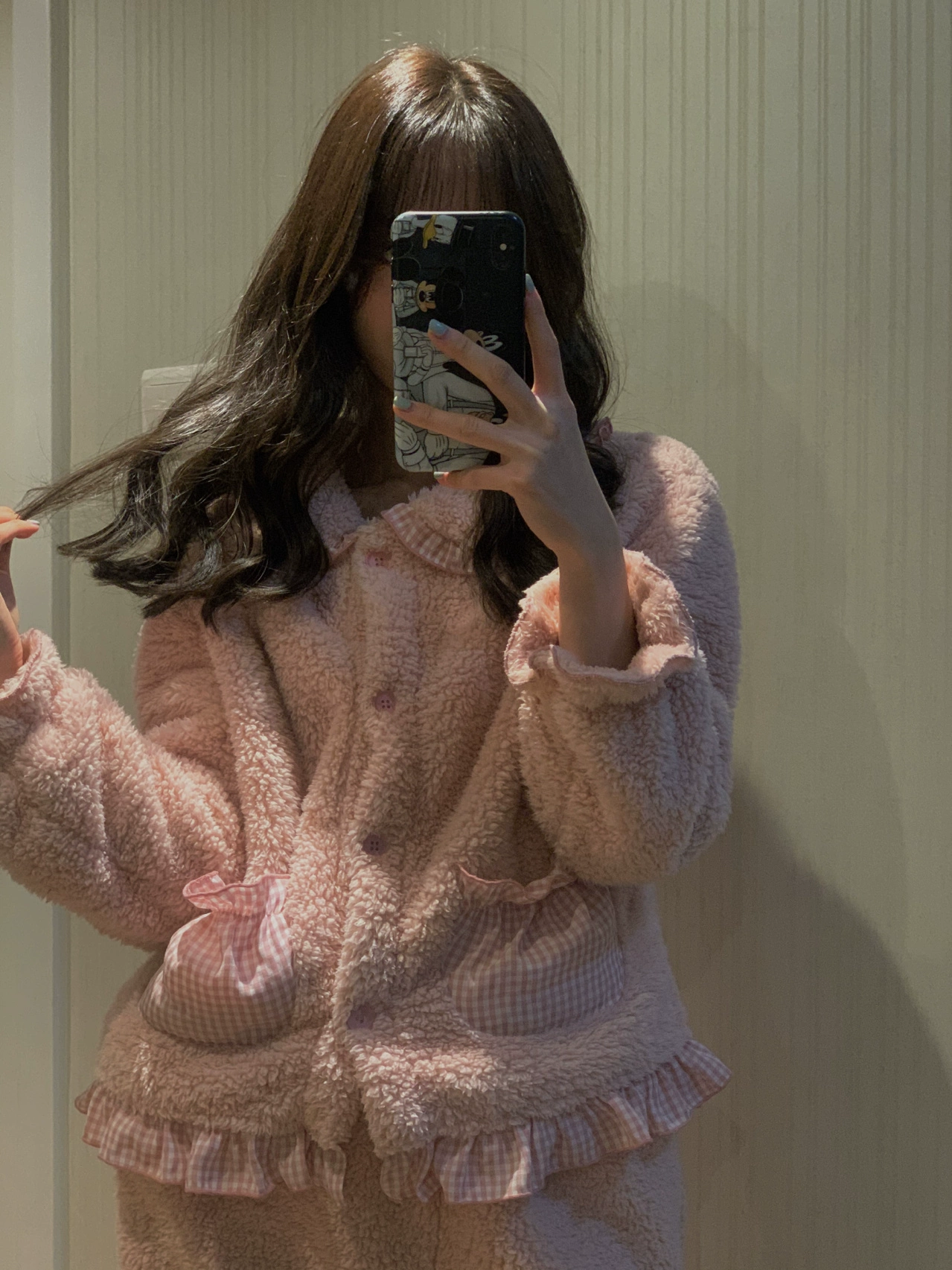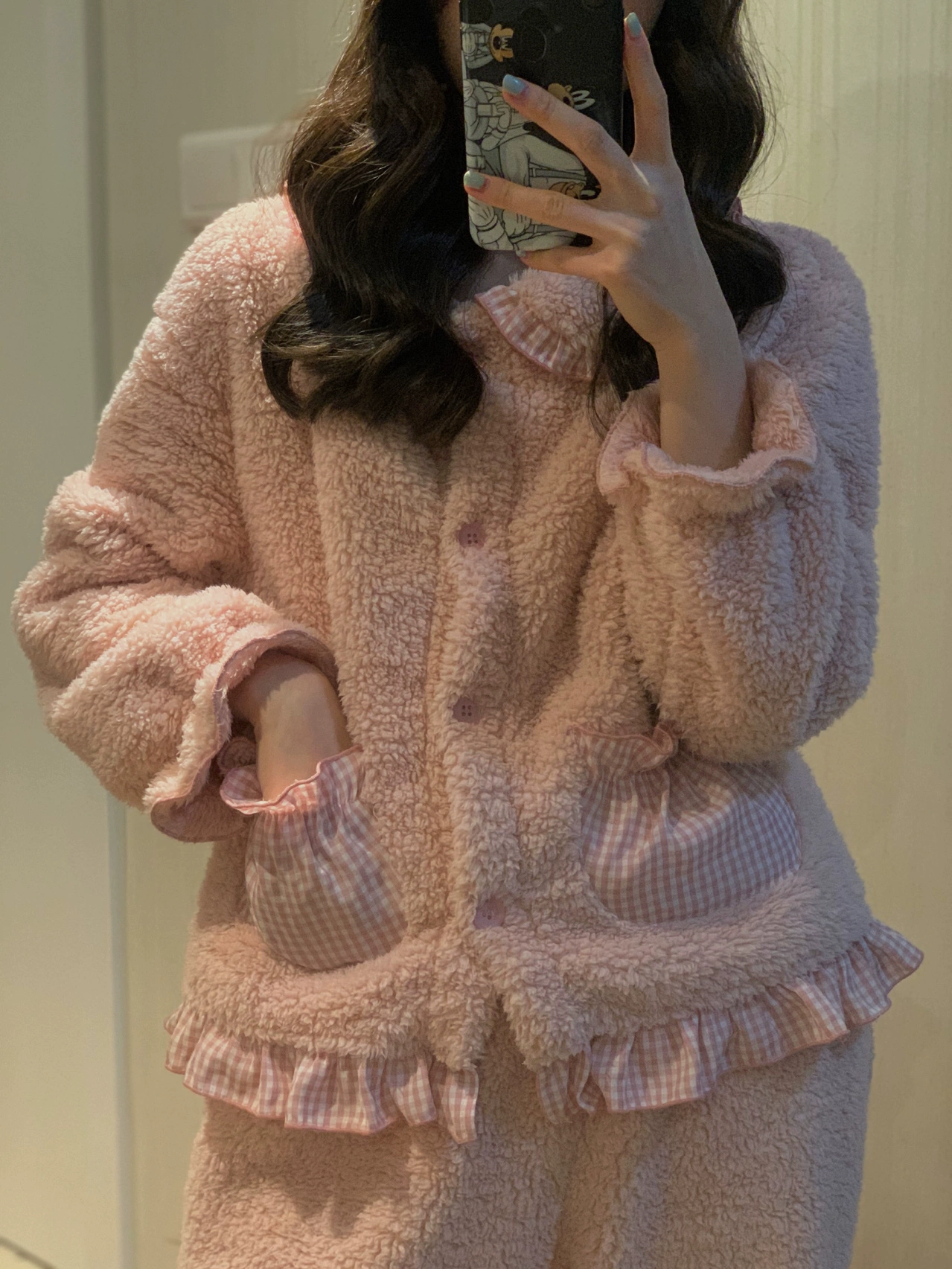 Girls doll collar coral velvet pajamas for women winter new princess style plus velvet thickened long-sleeved trousers home suit