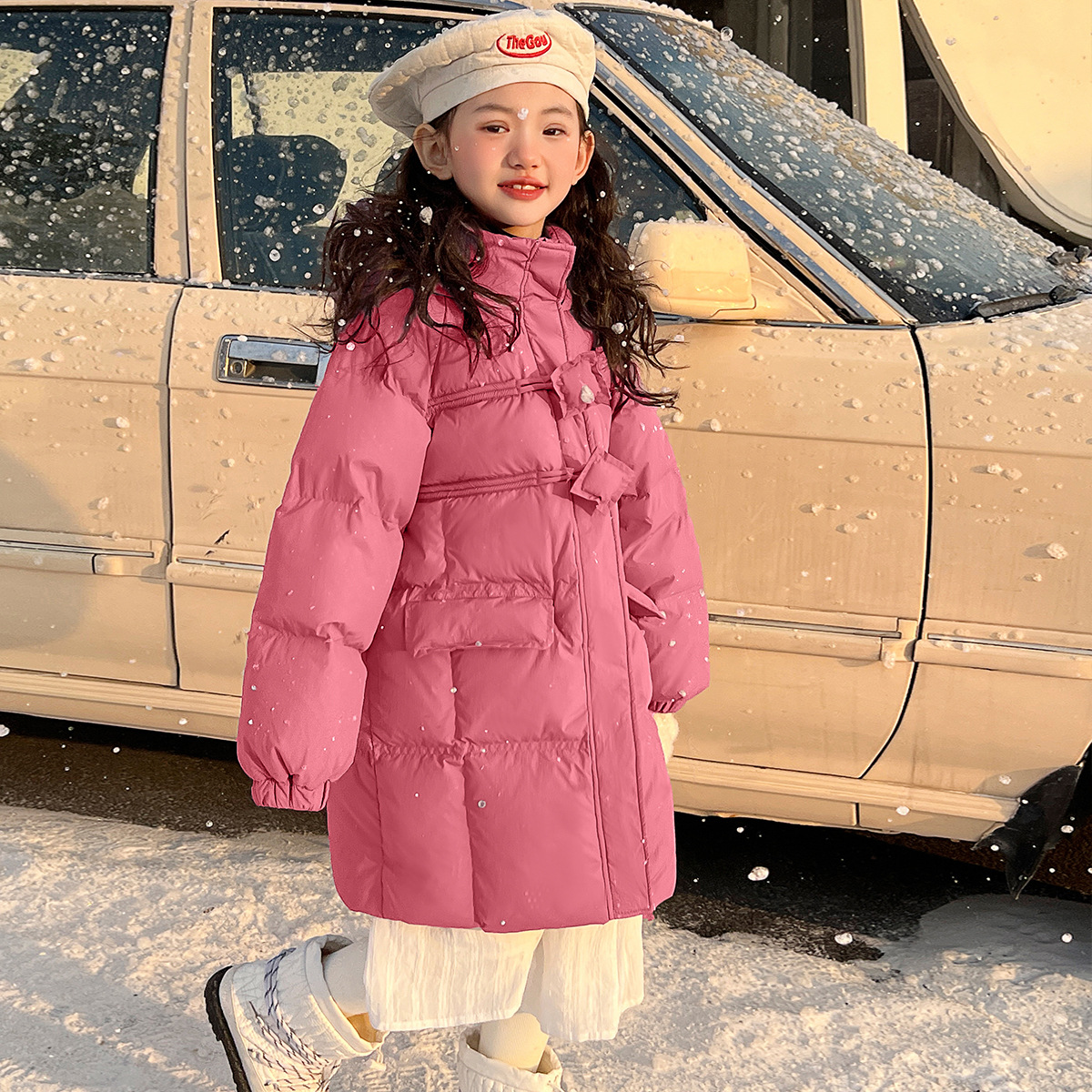 Girls Down Cotton-padded Jacket 2024 Winter Clothes New Children's Mid-length Thickened Hooded Jacket Children's Wear Korean Style Thick Cotton-padded Jacket