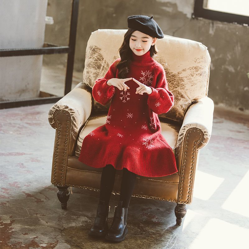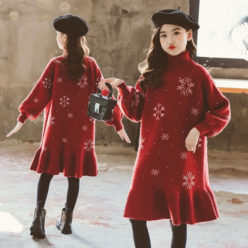 Girls' Dress Autumn and Winter 2023 New Children's Wear Children's Western Style Princess Dress Knitted Sweater Dress Korean Style Trendy Children's Dress