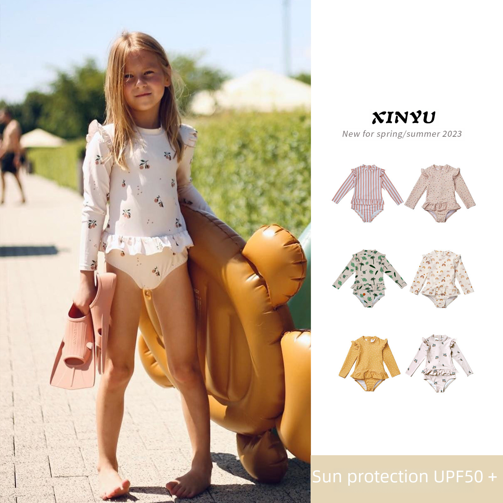 بدلة سباحة للبنات من قطعة واحدة مزهرة جديدة 2024 بدلة سباحة جديدة للأطفال سريعة الجفاف بدلة سباحة للأطفال بأكمام طويلة واقية من الشمس