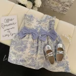 Girls French dress summer sweet bow flying sleeves fashionable foreign style travel photo skirt new skirt