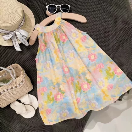 الفتيات الفرنسية فستان الصيف حلو القوس الطيران الأكمام الأكمام الأجنبية الأجنبية التنورة السياحية الغربية تنورة جديدة تنورة جديدة