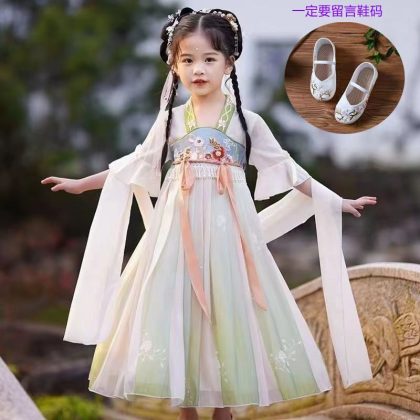 Girls Hanfu Chinese Style Super Fairy Spring and Autumn dress Girls 2024 New Style Skirt Antique Children's Ancient Dress Summer