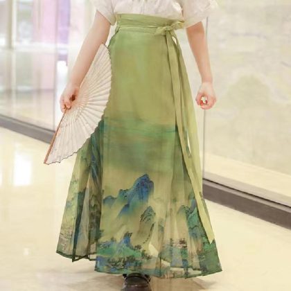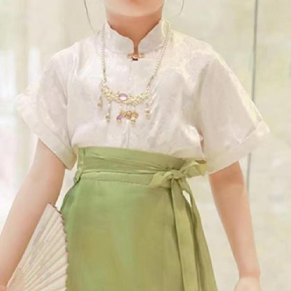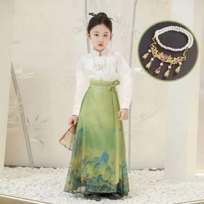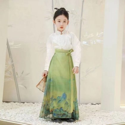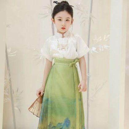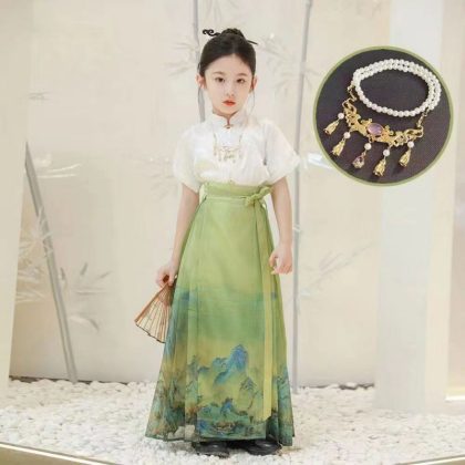 | nameOriginal | Girl's Horse-faced Skirt Summer Thin Short-sleeved suit Chinese Style Thousand Miles Jiangshan Figure Children's Hanfu Skirt Ming Style Tang Suit |
