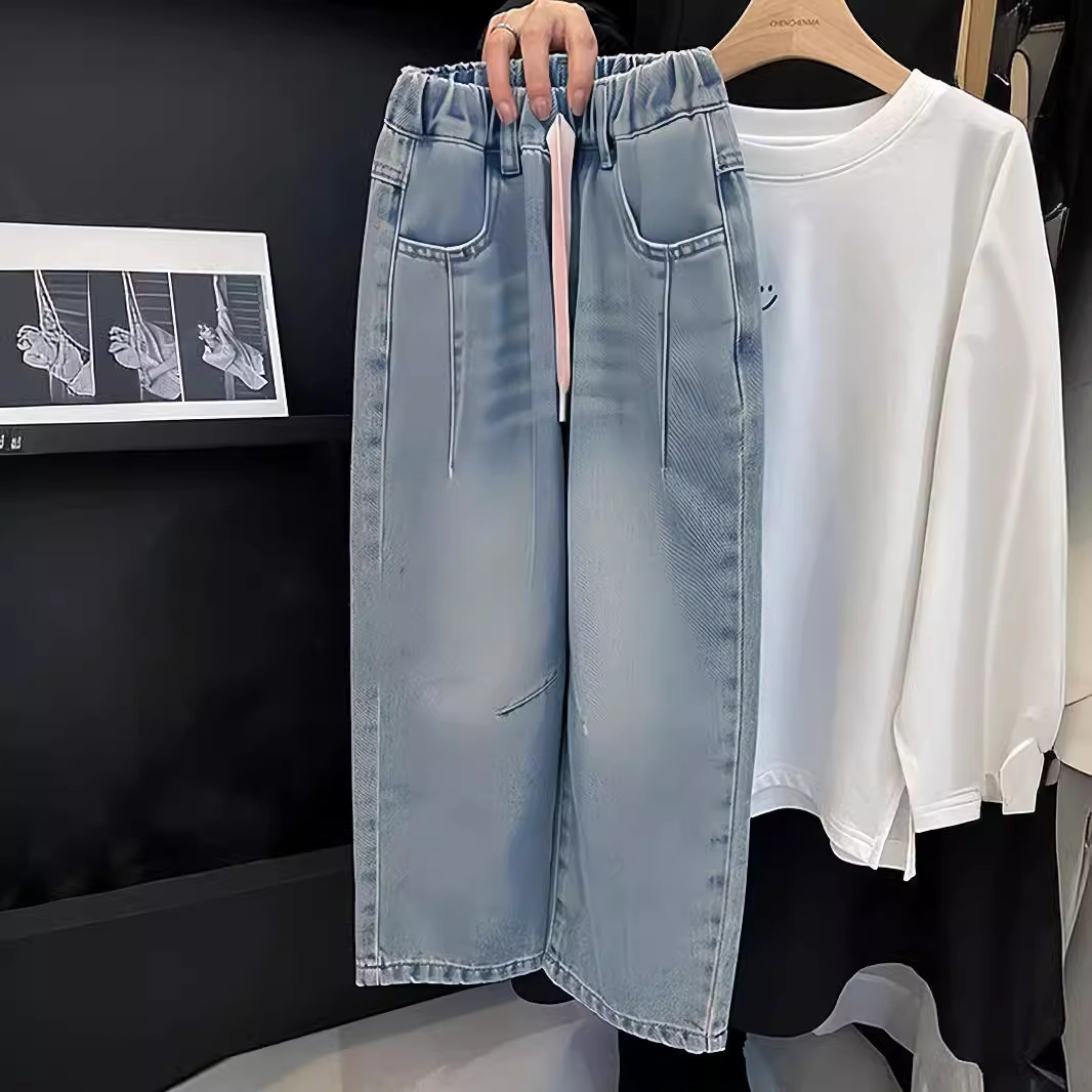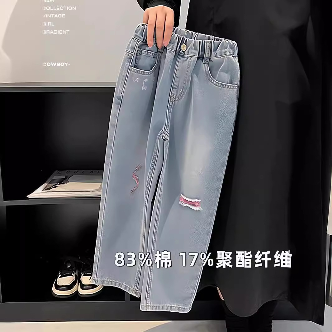 | nameOriginal | Girls' Hot Drilling Jeans Spring and Autumn 2024 New Children's Loose Straight Pants Korean Style Girls' Wide Leg Pants Western Style |