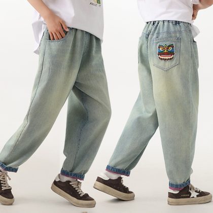 | nameOriginal | Girls' jeans spring and autumn clothing retro washed soft Denim loose straight casual pants radish harem pants |