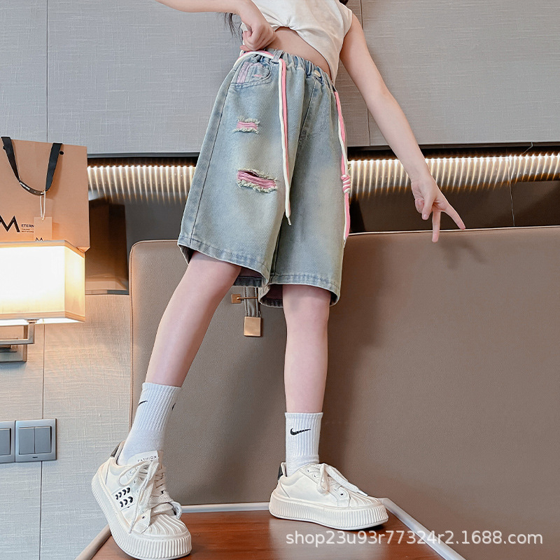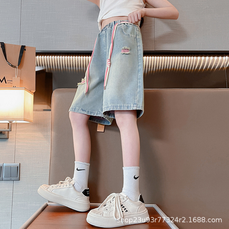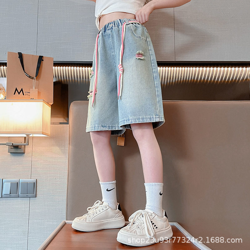 | nameOriginal | Girls' Jeans Summer Thin Outer Wear Shorts Big Children's Five-point Pants Internet Celebrity Street Summer Wear Ripped Children's Pants |