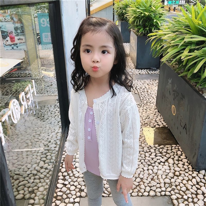 nameOriginal | Girls' knitted cardigan spring and autumn baby thin 3/4 sleeve hollow shawl children's coat air conditioning shirt |