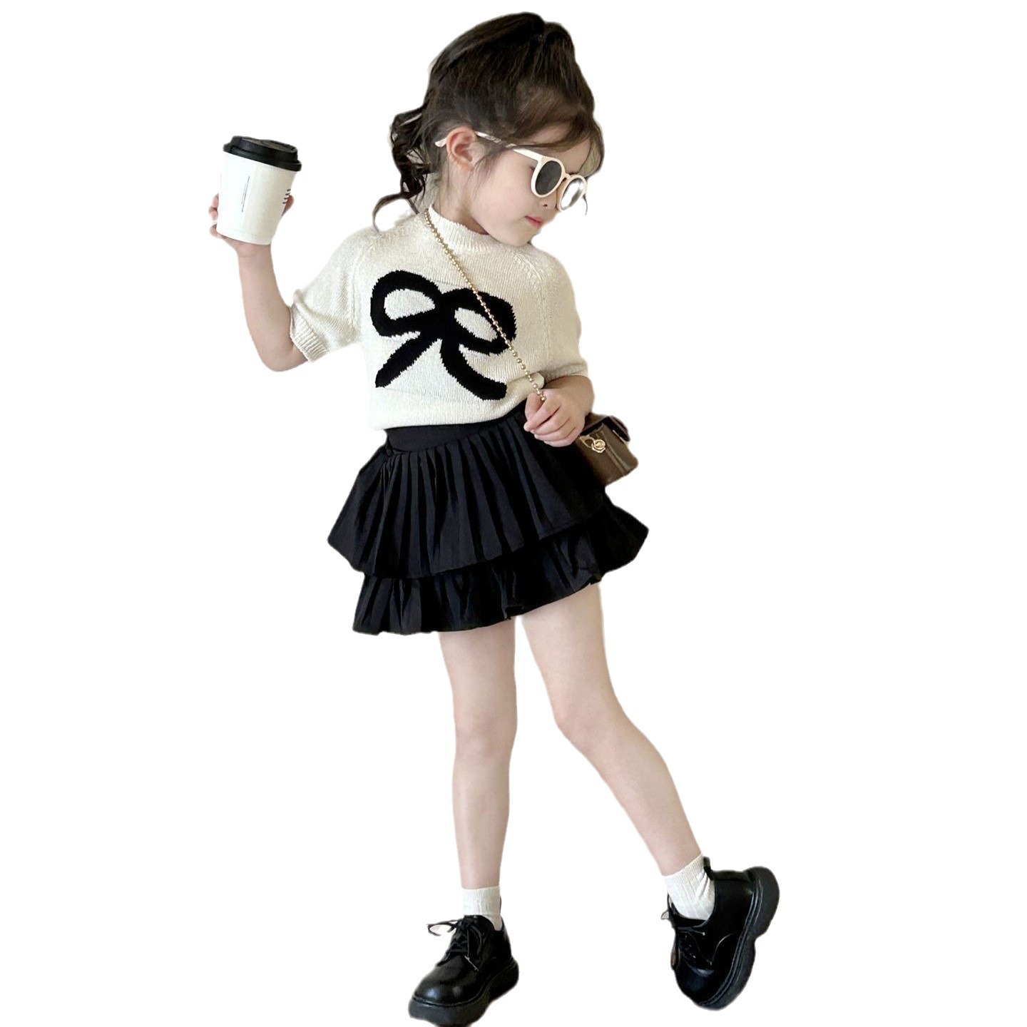 | nameOriginal | Girls' Korean-style Bow Ice Silk Knitted Top 2024 Summer Women's Treasure Cool Short-sleeved Thin Chanel Style Top |
