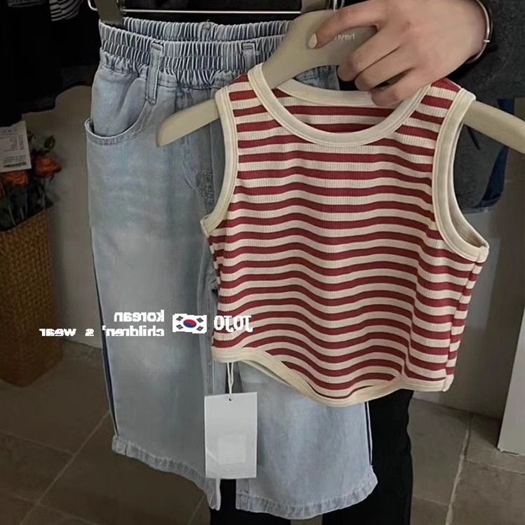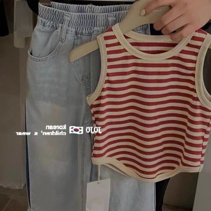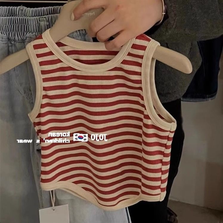 | nameOriginal | Girls' Korean Style Fashion Slim-fit Short Sleeveless Vest Children's Vintage Strap Striped Top 0075A046 |
