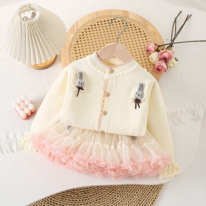 | nameOriginal | Girls' Korean-style Sweater Dress suit Baby Girl's New Arrival Western-style Cardigan All-match Bunny Knitted Cardigan Two-piece Set |
