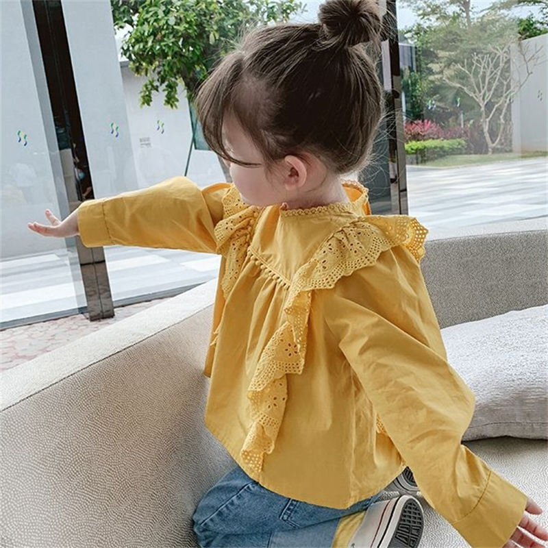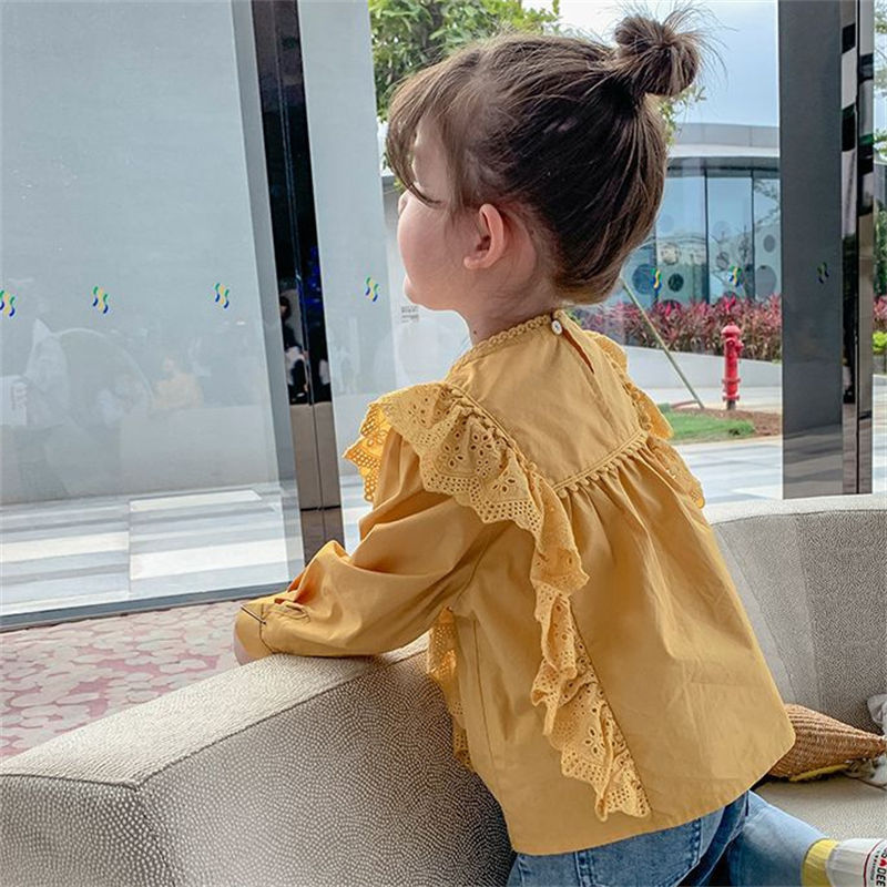 الفتيات الدانتيل قميص صغير ومتوسط ​​الحجم للأطفال 2024 نمط جديد قميص الربيع والخريف الطفل النمط الغربي دمية الكورية قميص