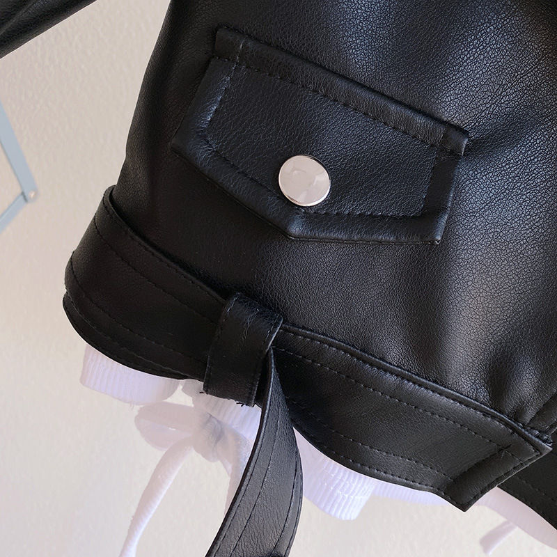 Girls' Leather 2024 Autumn New Children's Western Style Korean Baby's Biker Coat Spring and Autumn Jacket Top