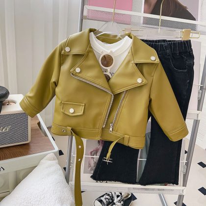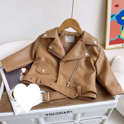 الفتيات الجلود 2024 الخريف جديد للأطفال النمط الغربي الكورية الطفل السائق معطف الربيع والخريف سترة أعلى