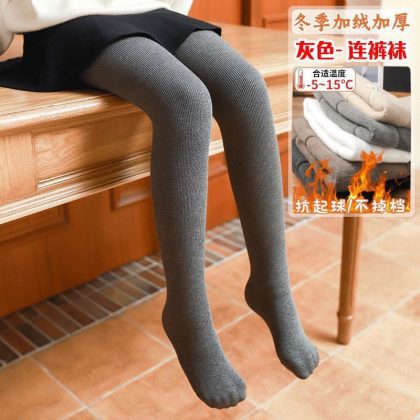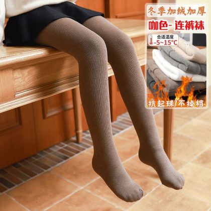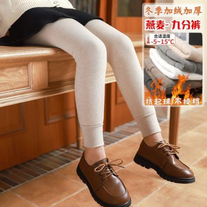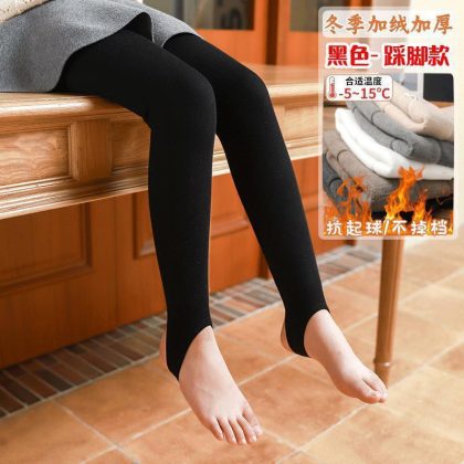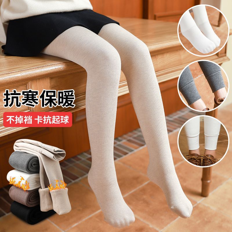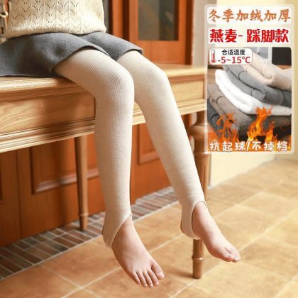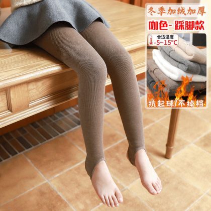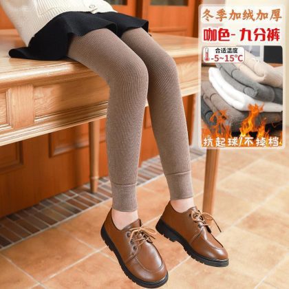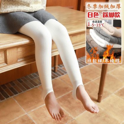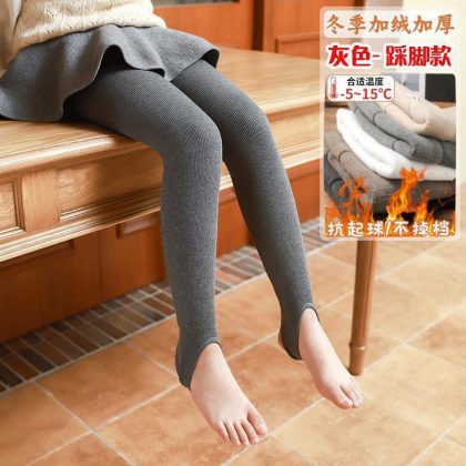 Girls' Leggings Autumn and Winter Velvet Lined Thickened Outer Wearing One-piece Velvet Foot Cropped Foot Pants Children's Pantyhose
