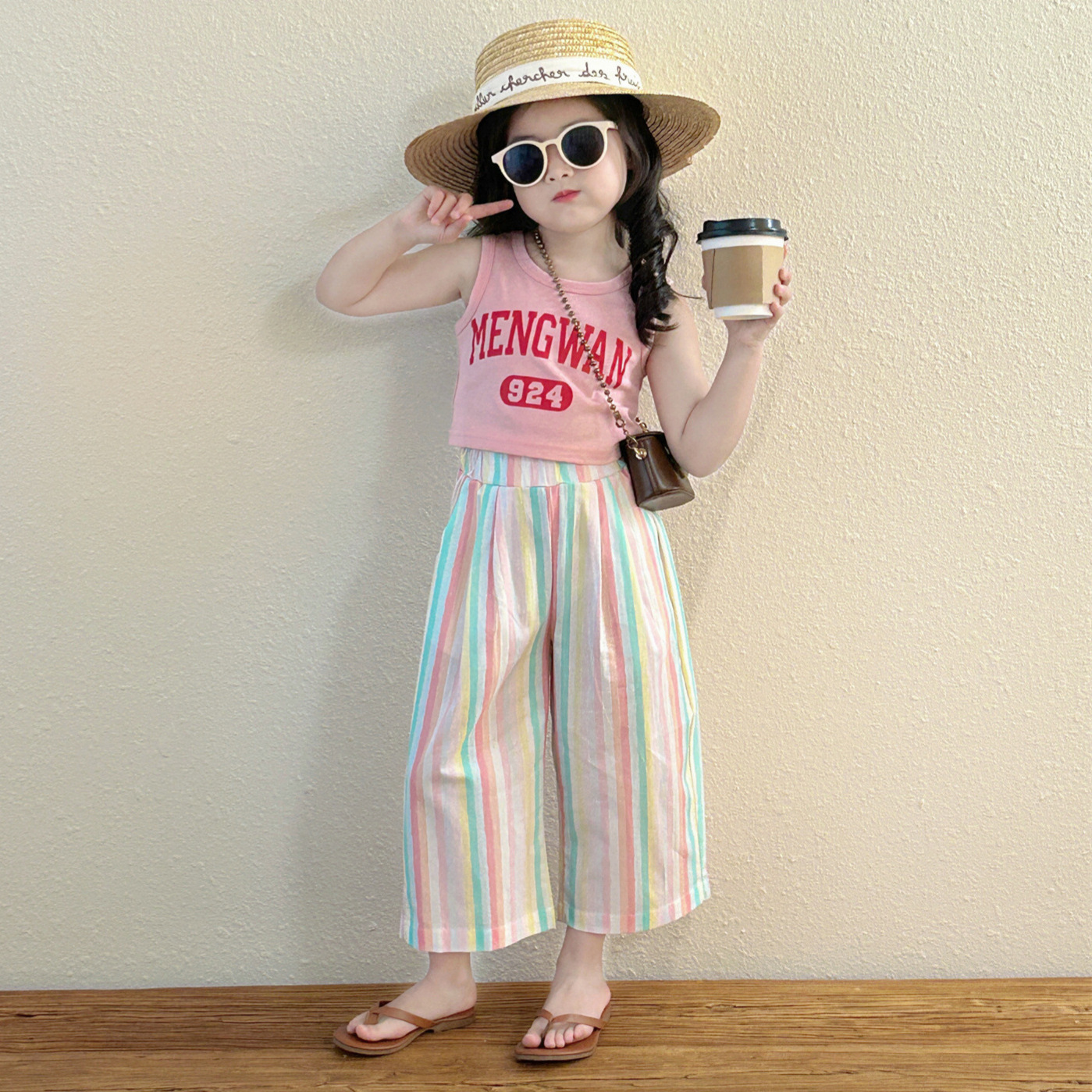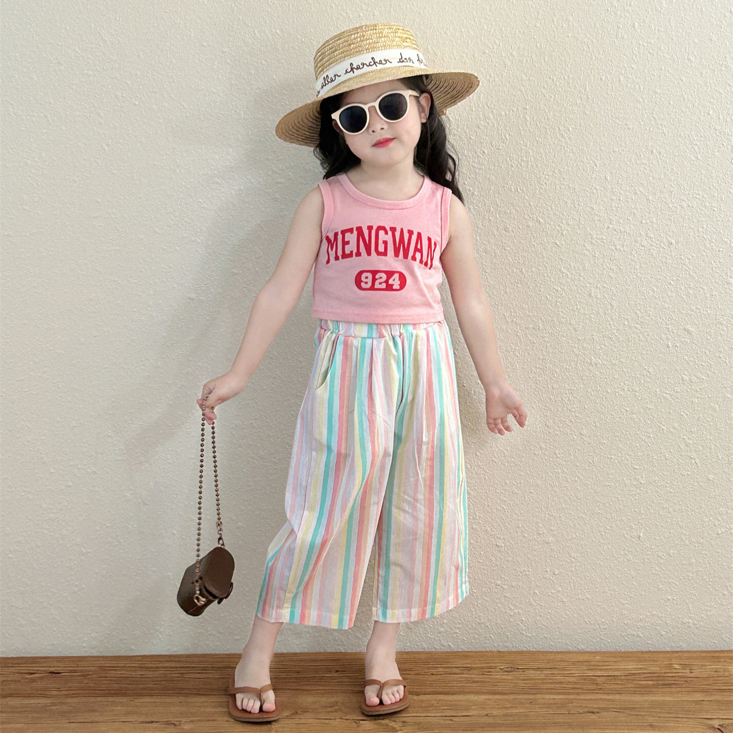 Girls' letter short vest 2024 summer children's clothing new Korean style western style baby girls' holiday sleeveless top