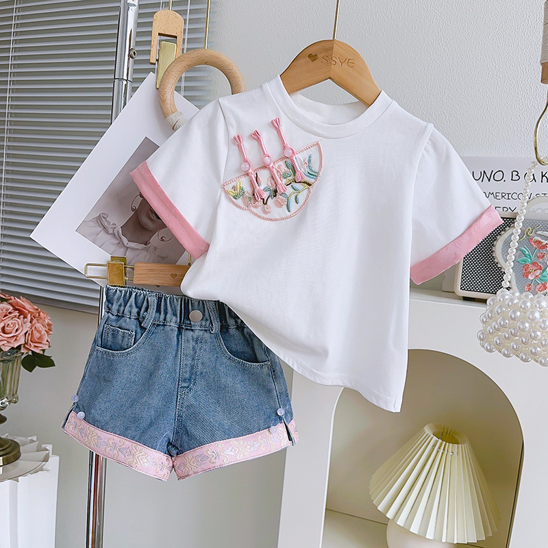 | nameOriginal | Girls' New Chinese Casual Round Neck Short Sleeve Top Summer New Casual Denim Shorts GC0813-AXA282 |