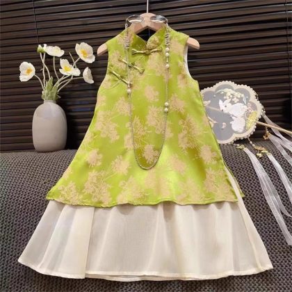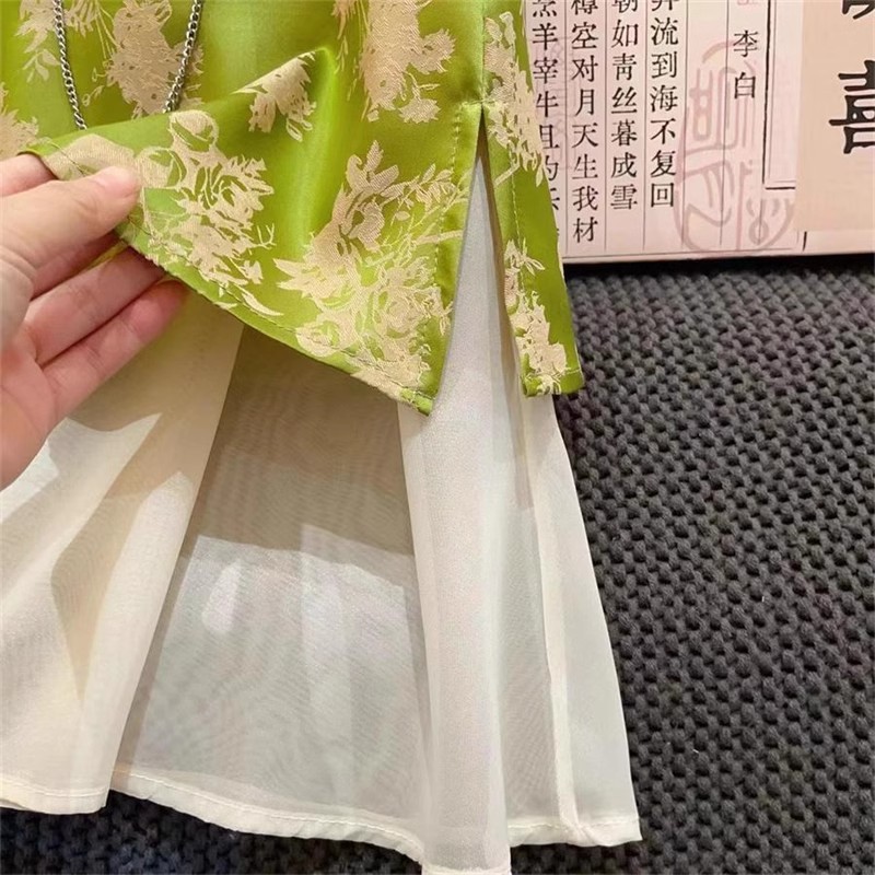 Girls' New Chinese Style dress 2024 Spring Clothing New Children's Clothing Hanfu Baby Floral Dress National Style Children's Cheongsam Dress