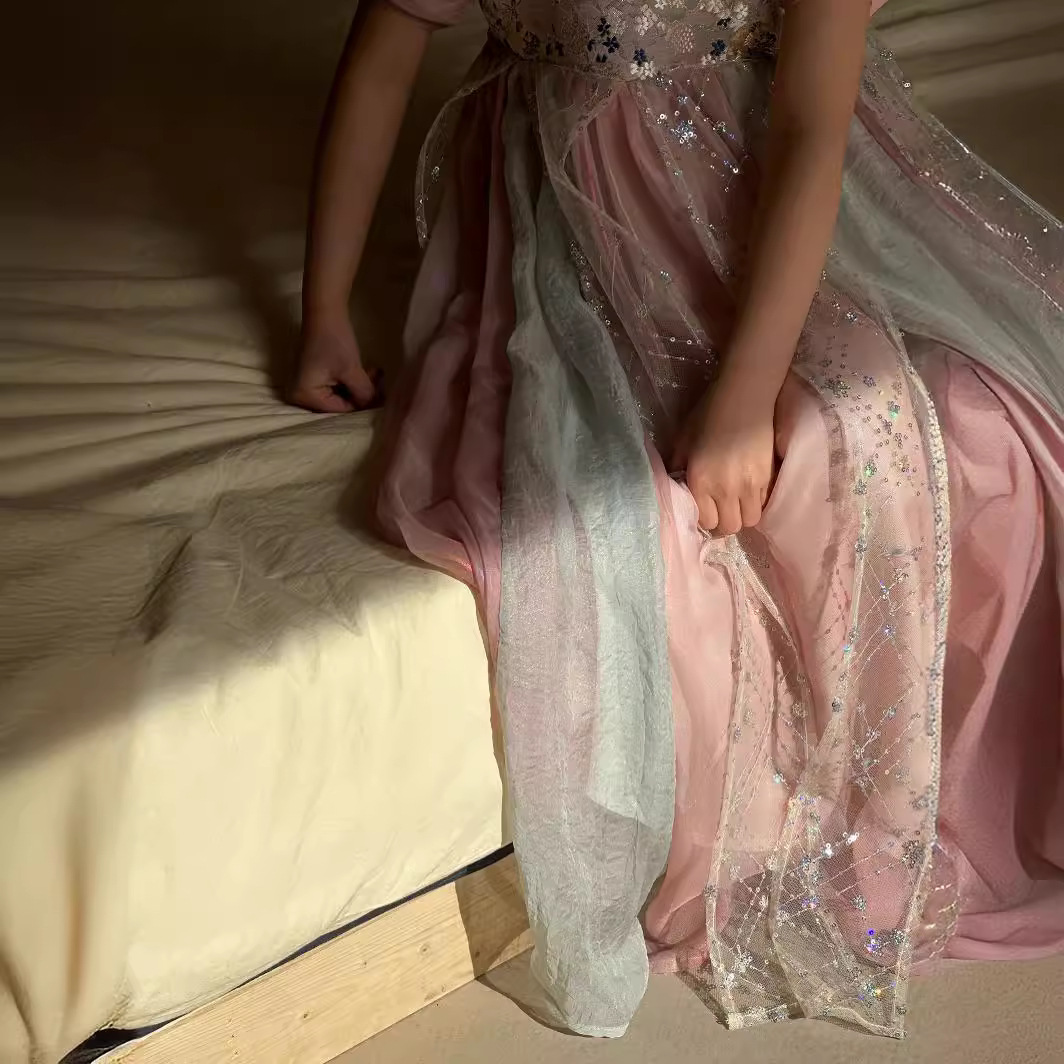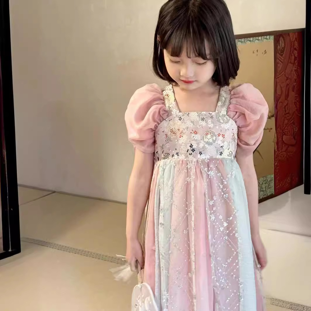 | nameOriginal | Girls' new Chinese style hanfu Chinese style ancient style children's clothing 24 summer long dress Tang suit sequined heavy industry |