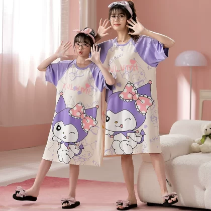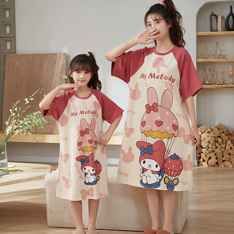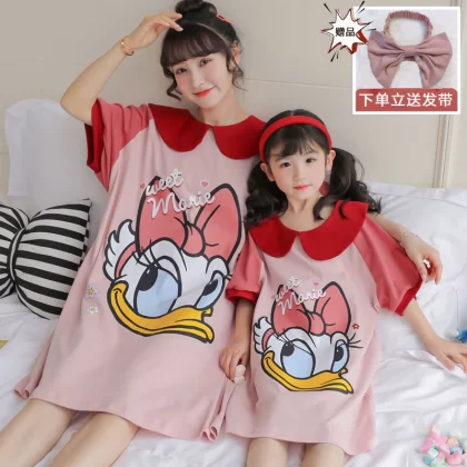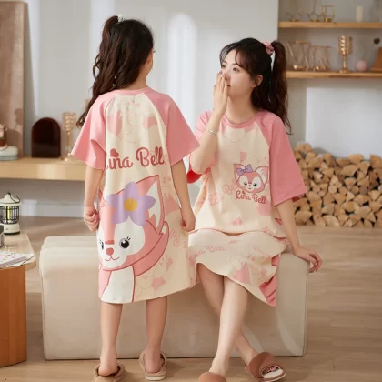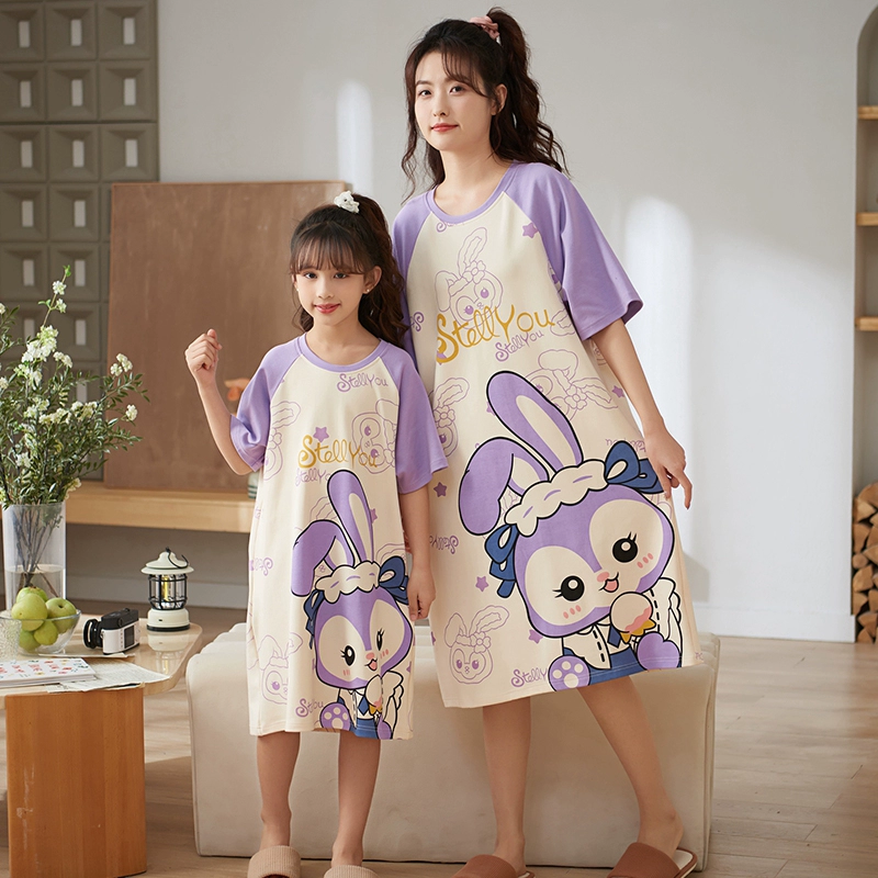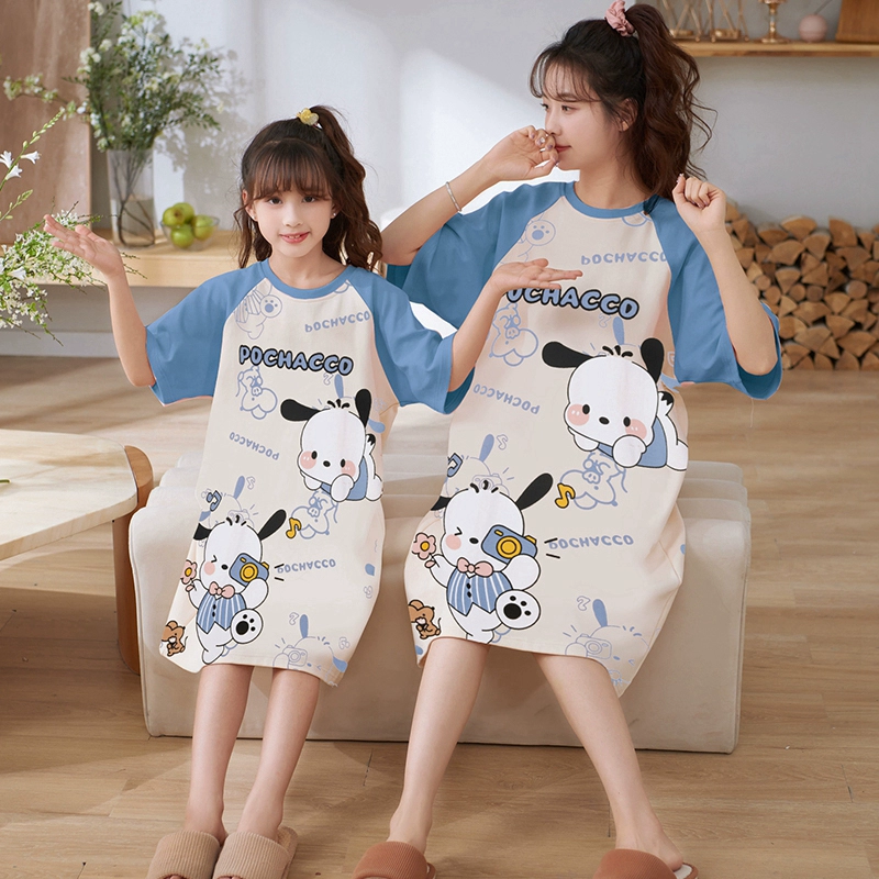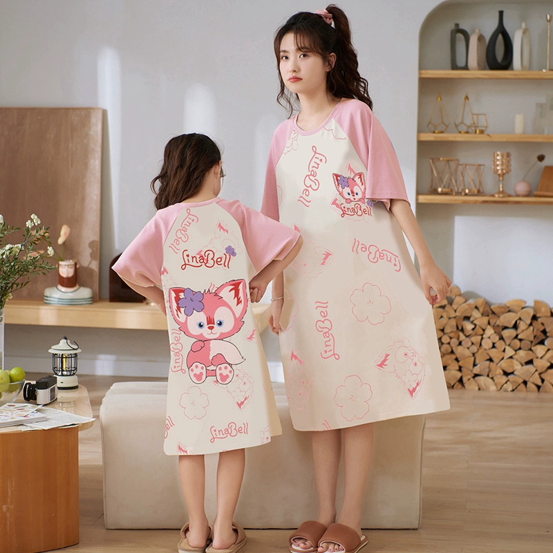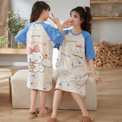 | nameOriginal | Girls nightgown summer short-sleeved pure cotton children's pajamas cinnamon dog girl mother and daughter nightgown thin section parent-child home clothes |