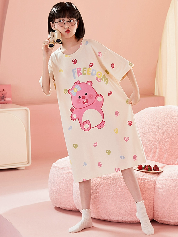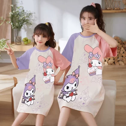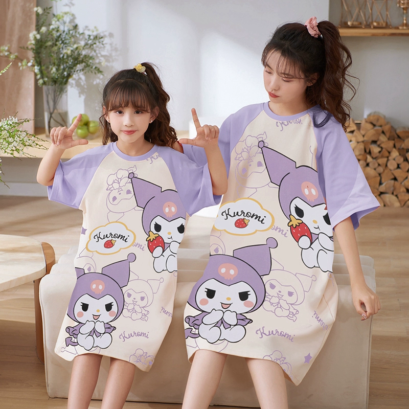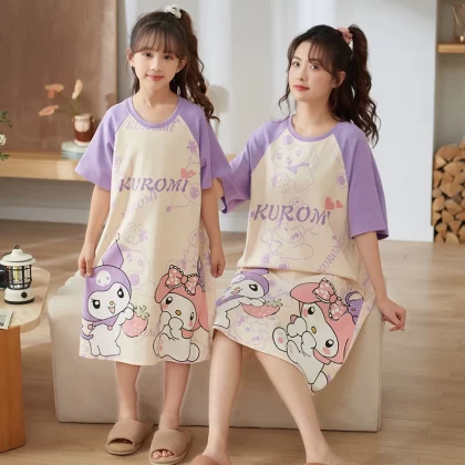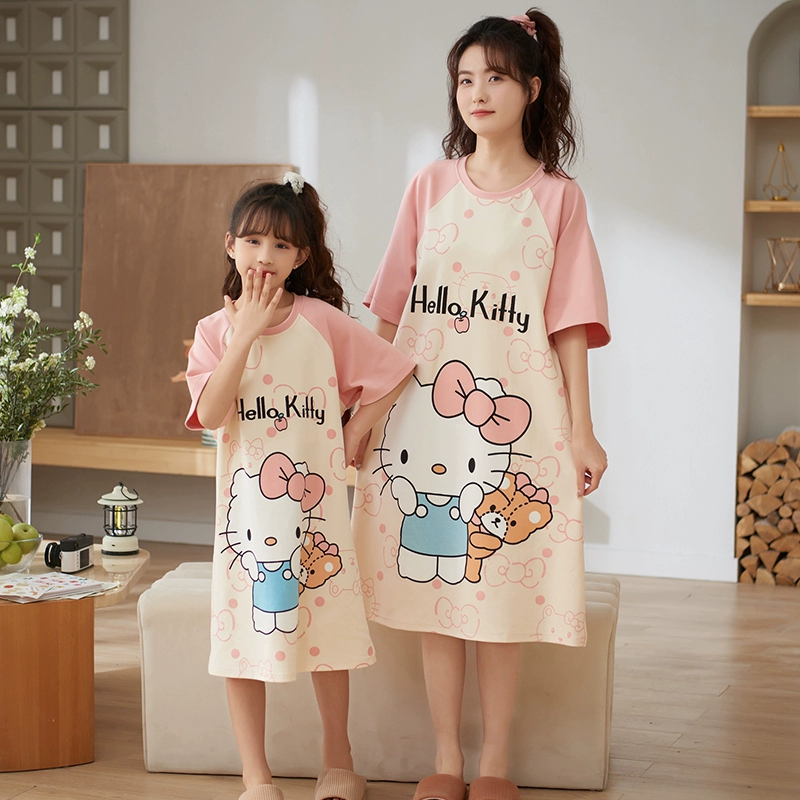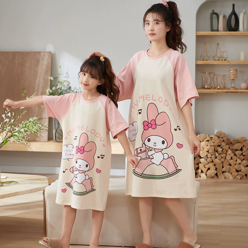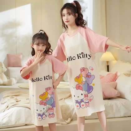 | nameOriginal | Girls nightgown summer short-sleeved pure cotton children's pajamas cinnamon dog girl mother and daughter nightgown thin section parent-child home clothes |