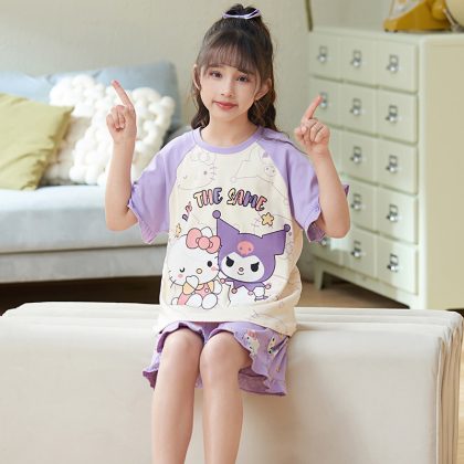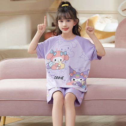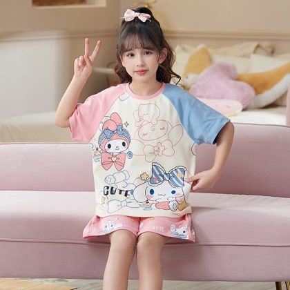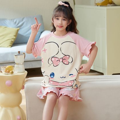 | nameOriginal | Girls' Pajamas Summer Thin Pure Cotton Short-sleeved Set Children's Pajamas Girls' Summer Middle and Big Children's Cartoon Home Clothes |