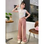 Girls' Pants Summer Thin 2024 New National Style Wide Leg Pants Girls' New Chinese Style Vest Pants Two-piece Set