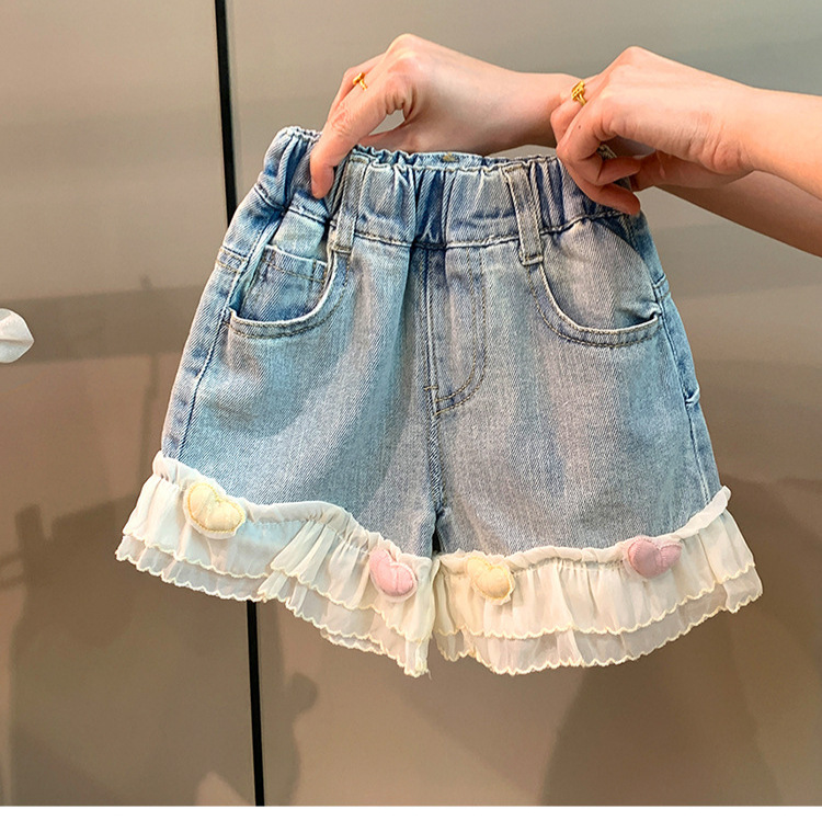 Girl's Pants Summer Thin Children's 2024 New Love Princess Shorts Baby Western Style Casual Soft Jeans