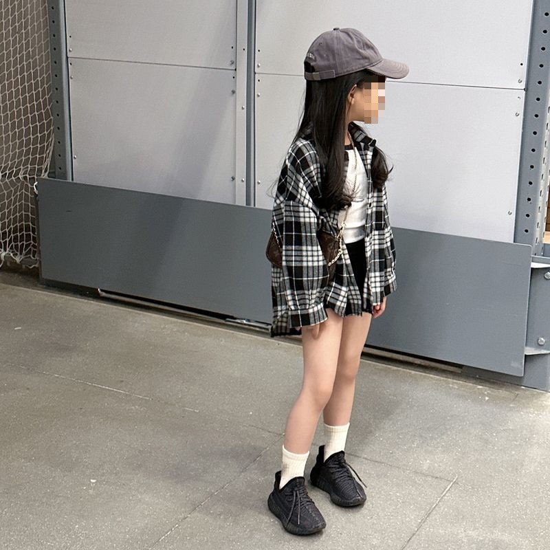 Girls' plaid shirt 2023 Spring and Autumn new children's long-sleeved Korean style western style casual top versatile 0184A022