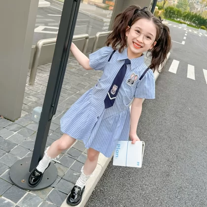 | nameOriginal | Girls Rabbit Summer College Style Shirt Dress |