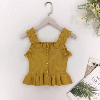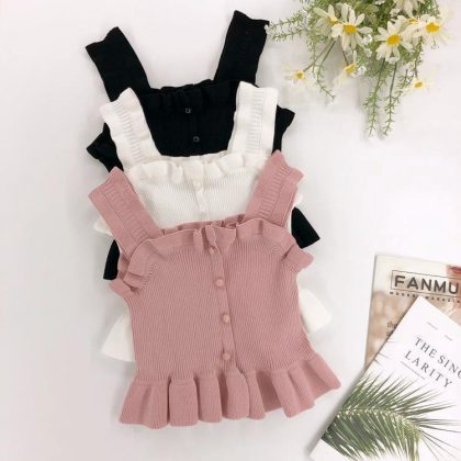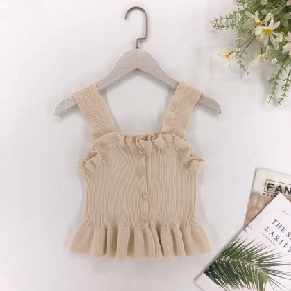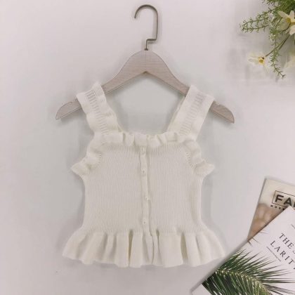 Girls' Ruffled Camisole Summer New Style Outer Wear Inner High-Grade Knitted Doll Shirt Sleeveless Top 0158