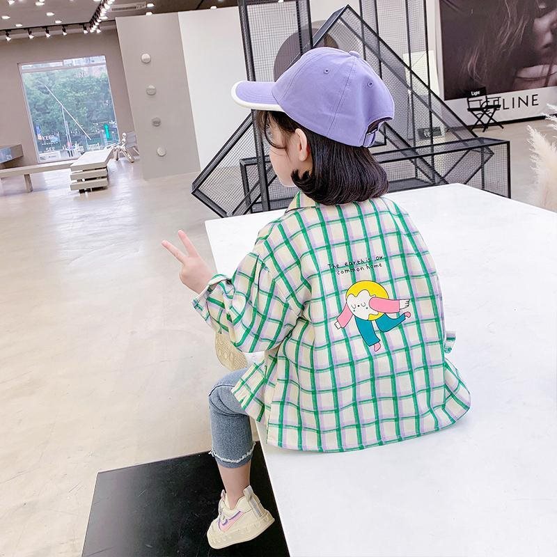 Girl's Shirt Spring and Autumn New Baby's Plaid Shirt Long Sleeve Internet Popular Foreign Style Girl's Cardigan Top Korean Style Fashionable
