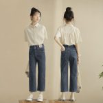 | nameOriginal | Girls' shirt Summer 2024 middle and big children college style short lapel Korean style Cotton Girls' jeans western style |