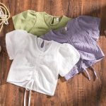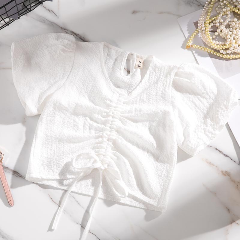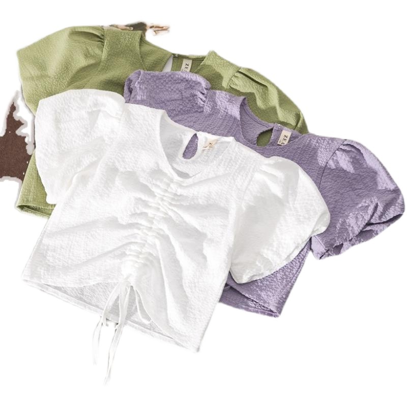 Girls' Shirt Summer Clothes Big Children's Bubble Sleeve Top Children's Shirt Doll Shirt Women's Western Style Short Sleeve Summer 0156