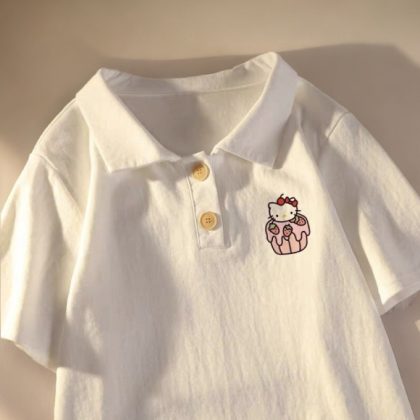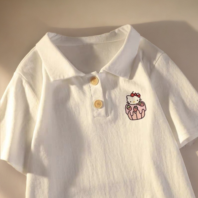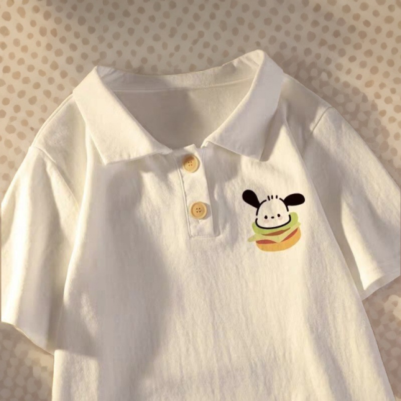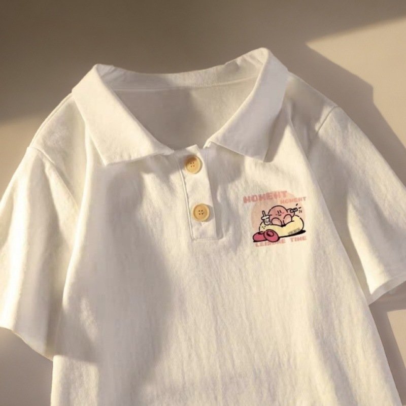Girls' Short-sleeved T-shirt Polo Shirt Printed Summer Dress Base Shirt for Big Kids and Little Girls Children's Stylish Top
