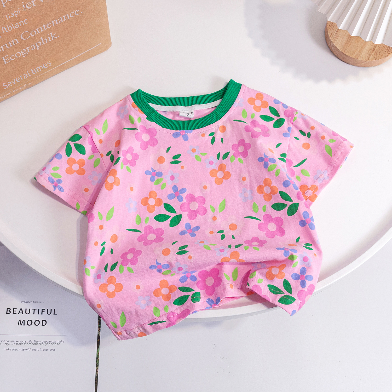 | nameOriginal | Girls' Short-sleeved T-shirt Summer New Korean Style Women's Baby's Stylist Cotton Thin Floral T-shirt Girls' Half-sleeved Top |