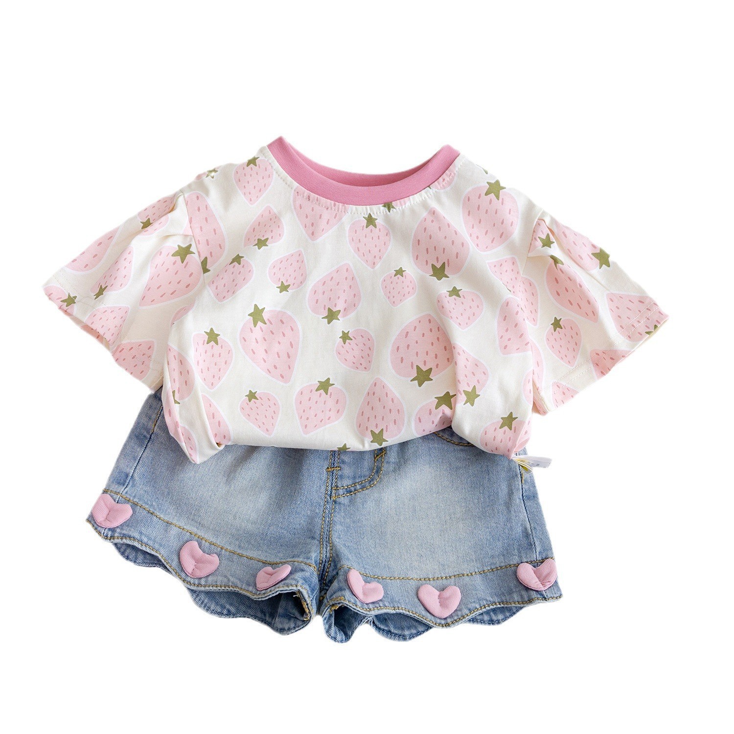 | nameOriginal | Girls' Short-sleeved Top Shorts suit Summer 2024 New Styline Jeans Two-piece Children's Korean-style Summer Wear |