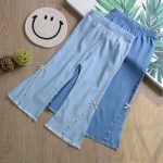 nameOriginal | Girls' slim pants summer air conditioning pants Western style children's wide-leg pants summer Tencel Denim thin high elastic soft |