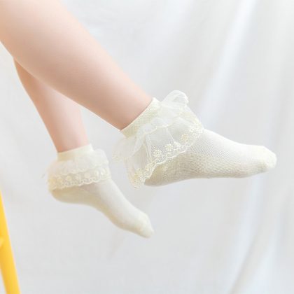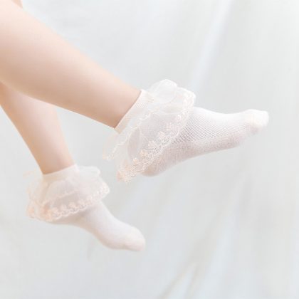 Girls Socks Lace Summer Thin Latin Dance Special Socks Boneless Mesh Breathable White Princess Cotton Socks
