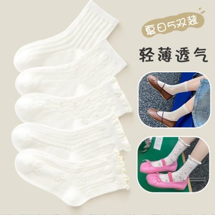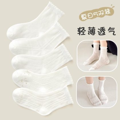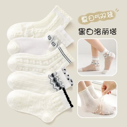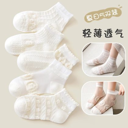 Girls socks summer thin children's mesh tube socks summer breathable baby white lace princess socks