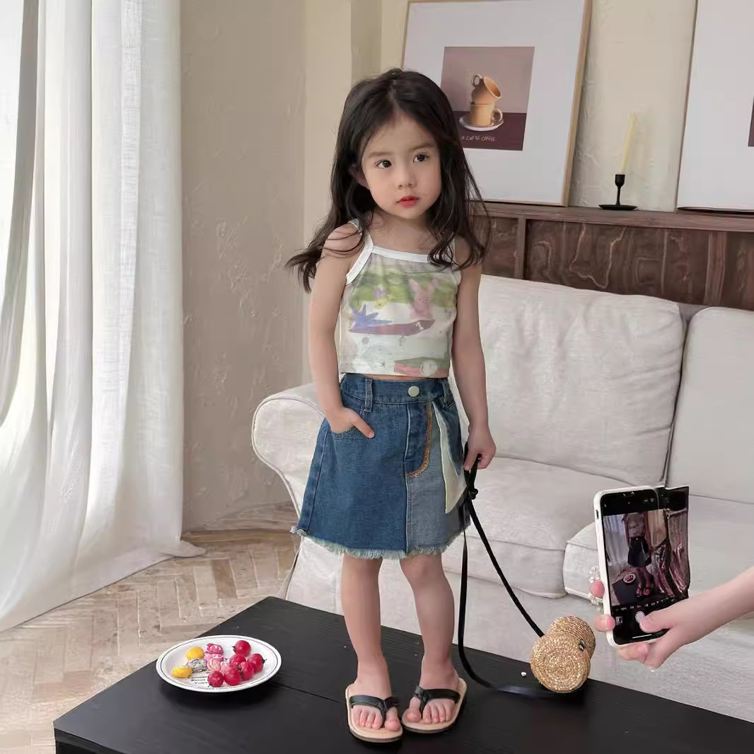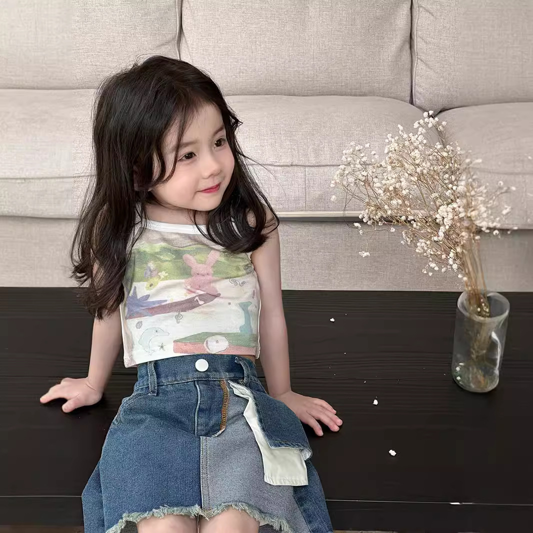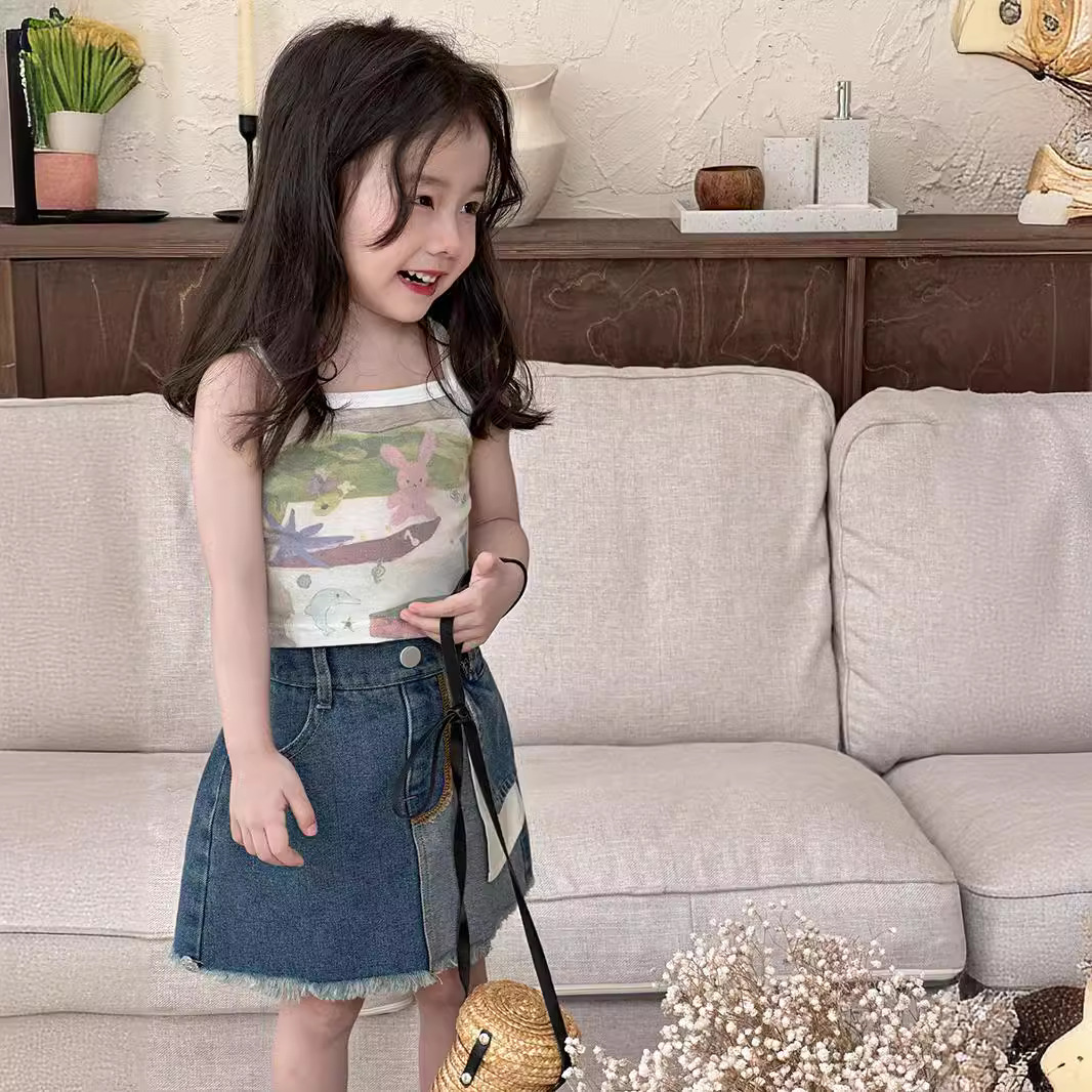 | nameOriginal | Girls' Spice Style Graffiti Vest 2024 Summer New Children's Cartoon Printed Sleeveless T-Shirt Sling |