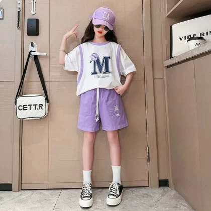 | nameOriginal | Girls Sports Suit 2024 New Children's Style Summer Clothes Girls Big Children Internet Celebrity Street Children's Clothes White Shorts |