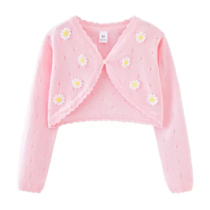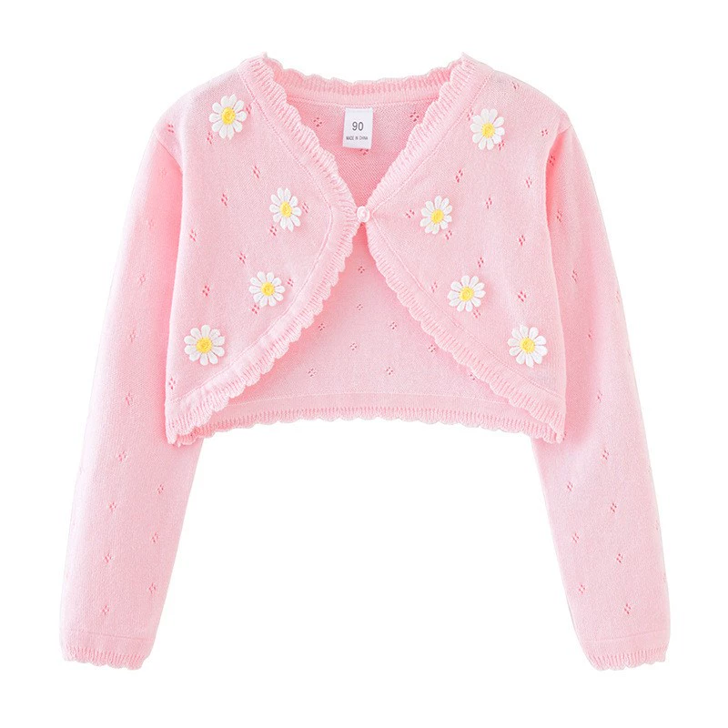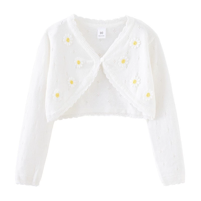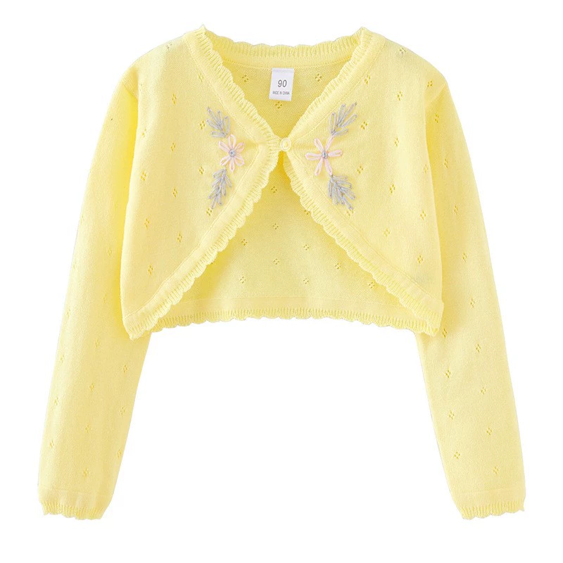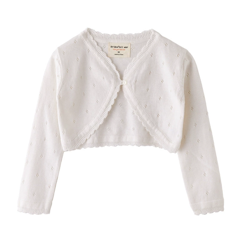 Girls spring and summer pure cotton shawl knitted cardigan