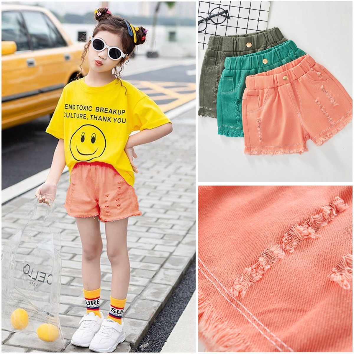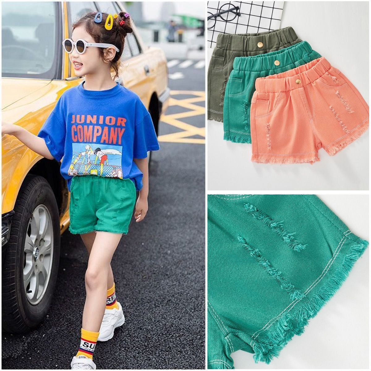 | nameOriginal | Girls' spring and summer versatile ripped jeans 2024 New Korean style loose casual thin mid-waist shorts for middle and big children |