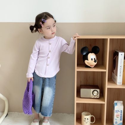 Girls' striped bottoming shirt 2023 autumn and winter New sweet and spicy short long-sleeved T-shirt women's all-match Korean style top