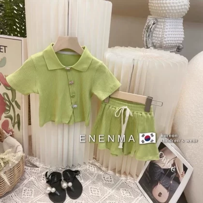| nameOriginal | Girls suit new 2024 summer thin letter short-sleeved shorts baby casual Korean style pure cotton two-piece set trendy |