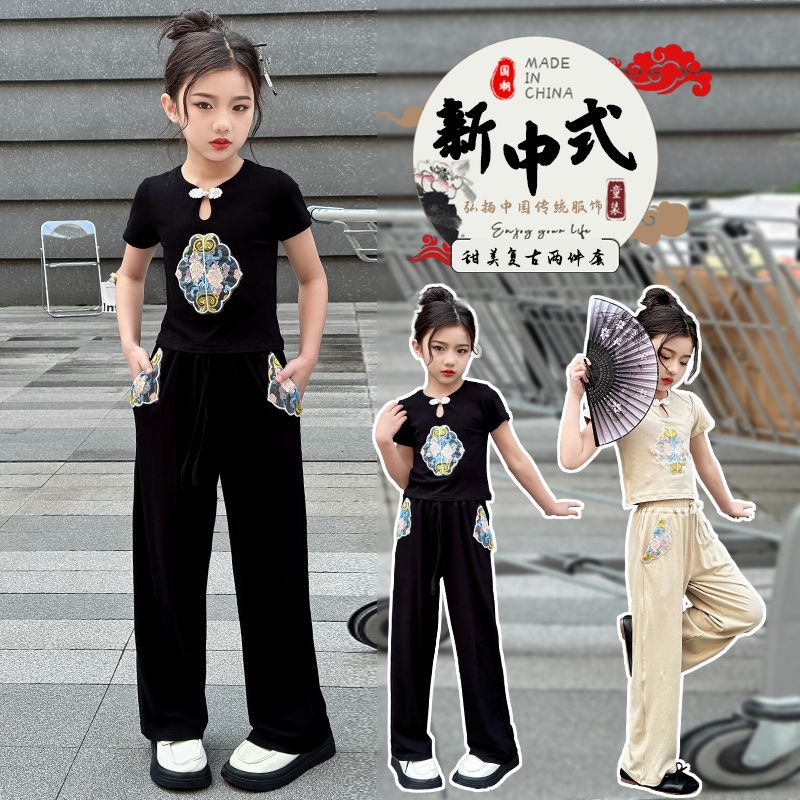 | nameOriginal | Girls' suit Summer 2024 New Summer Dress for Big Kids Summer Guofeng Western Style Short Sleeve Pants Thin Two-piece Set |