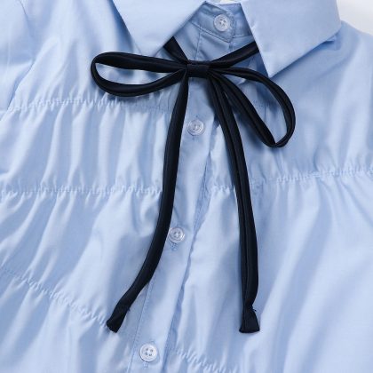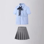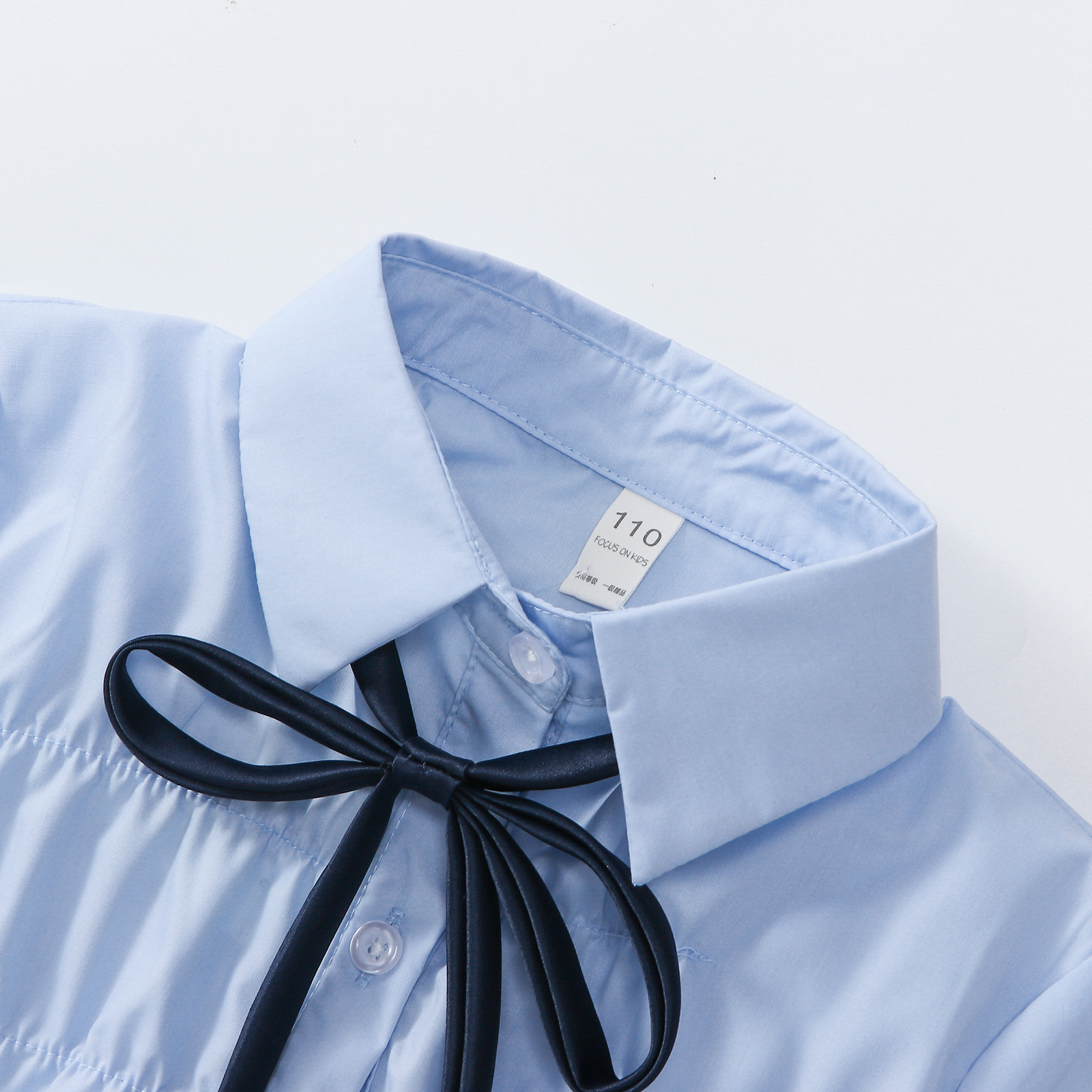 | nameOriginal | Girls Summer College Style Blue Short Sleeve Shirt Sweet Loose JK Shirt High-grade Pleated Bow Top |