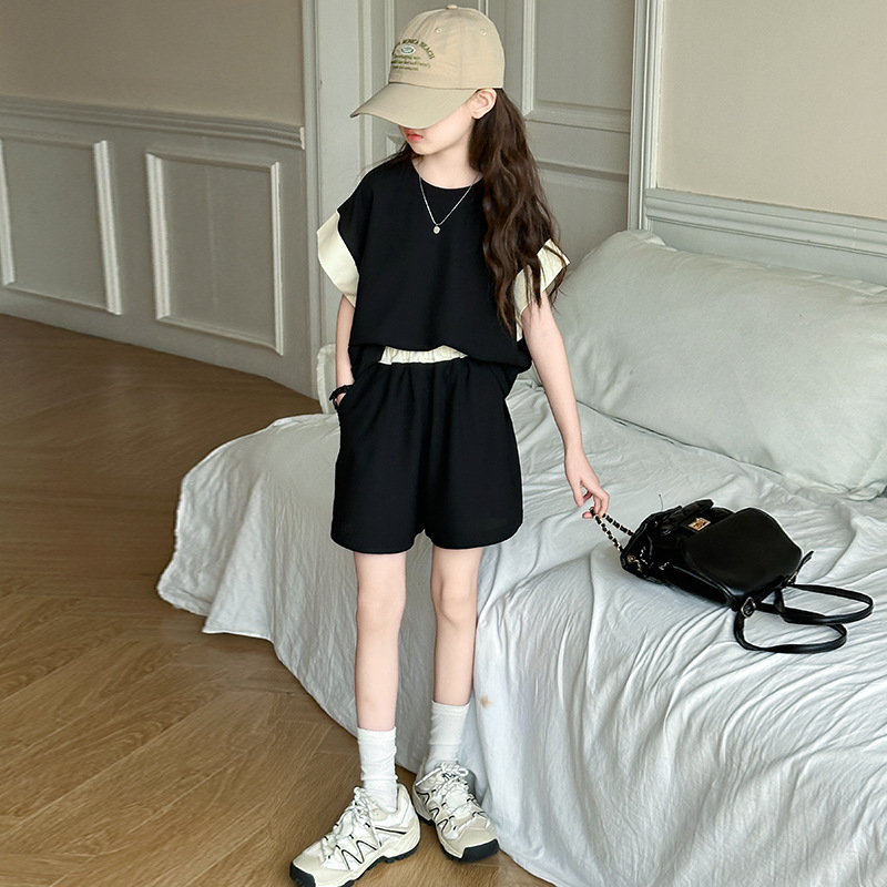 | nameOriginal | Girls' Summer Contrast Color Stitching suit Summer Fashionable Elegant Short-sleeved Casual Loose Shorts Two-piece Set |