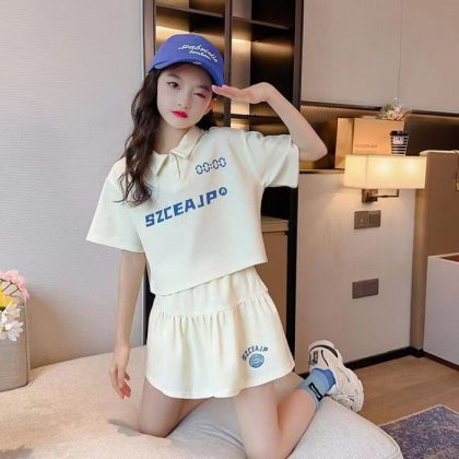 | nameOriginal | Girls' summer dress suit 2024 New Western style children's suit skirt medium and big children girls' fashionable college style skirt set |